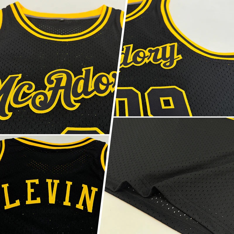 Custom Black Black-Gold Authentic Throwback Basketball Jersey